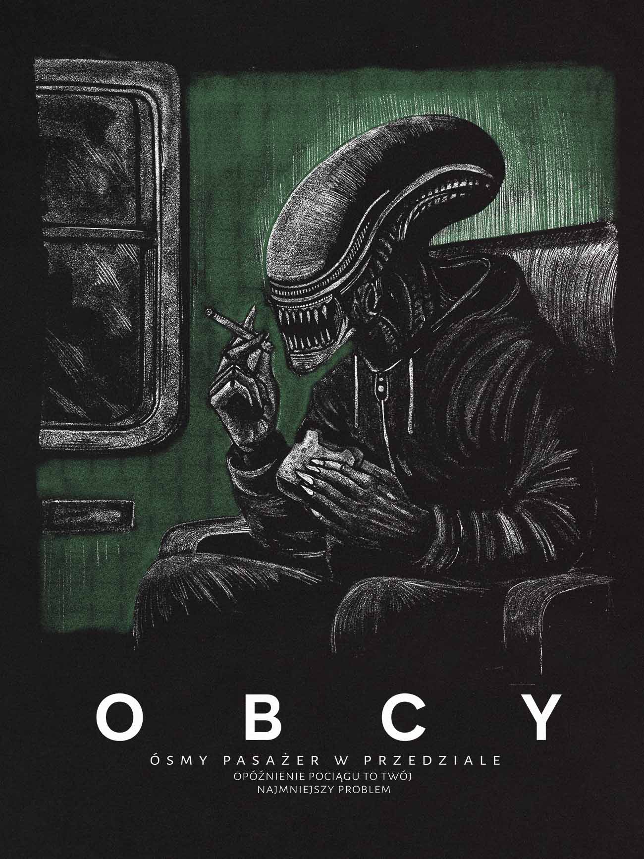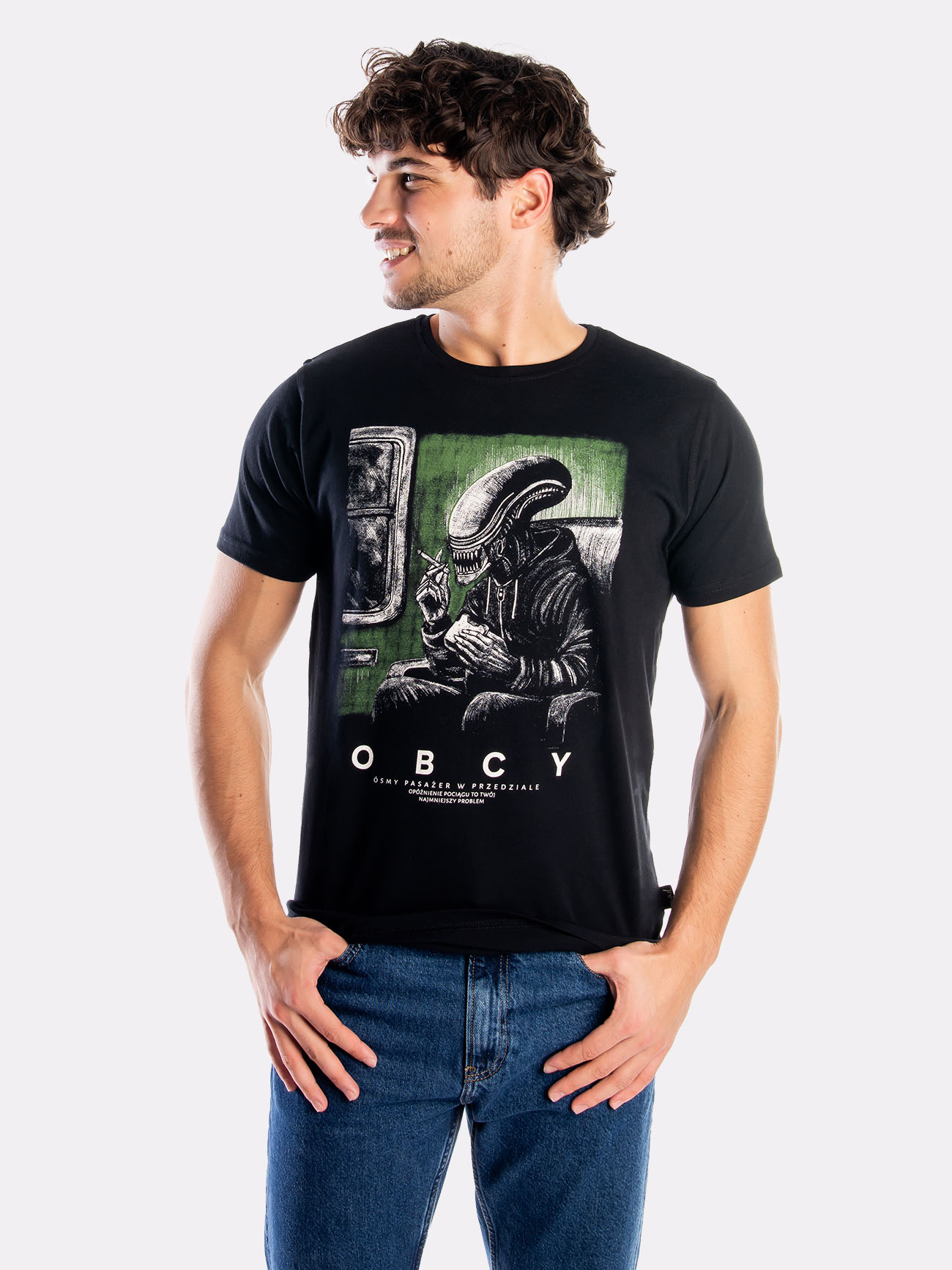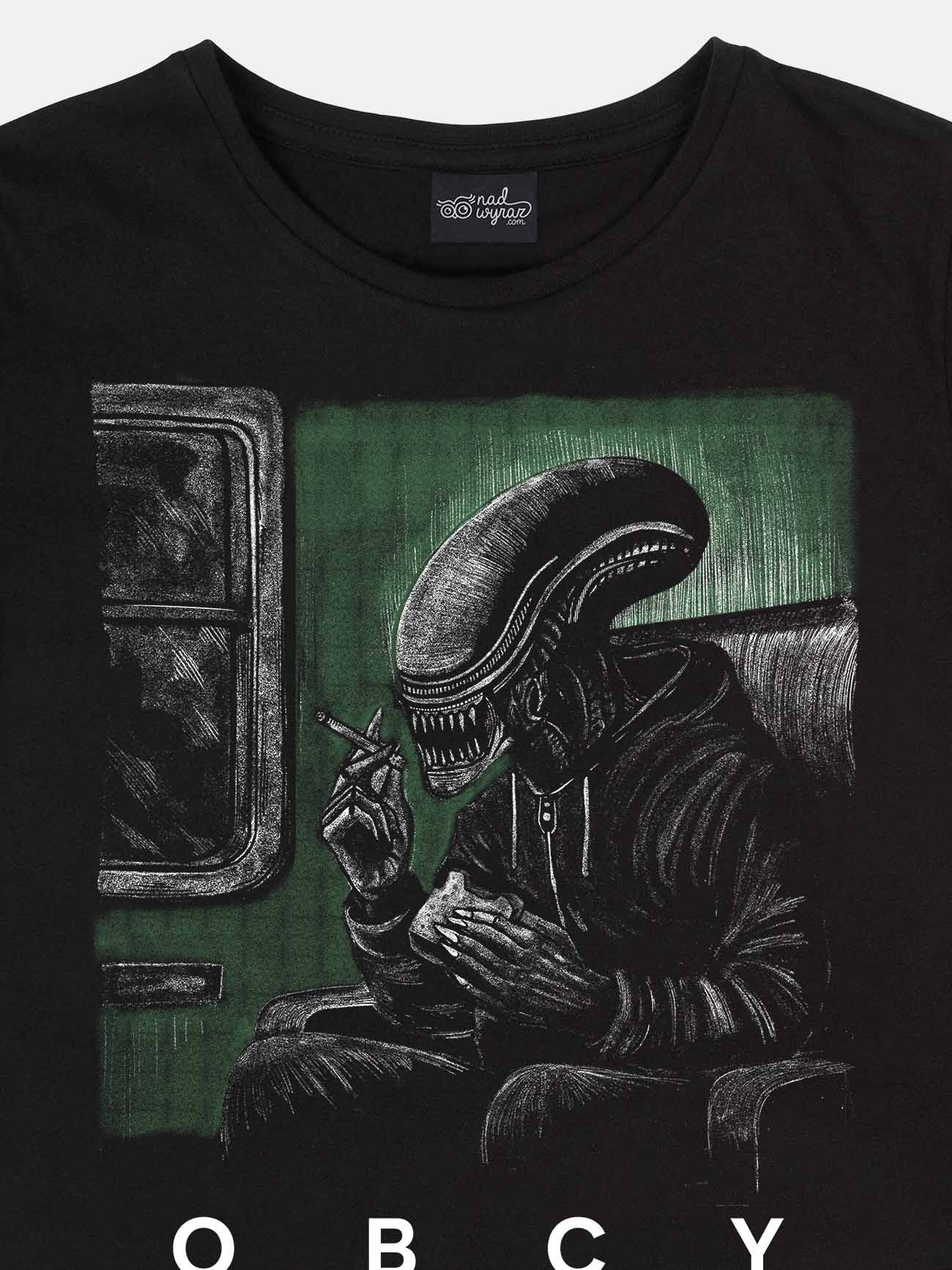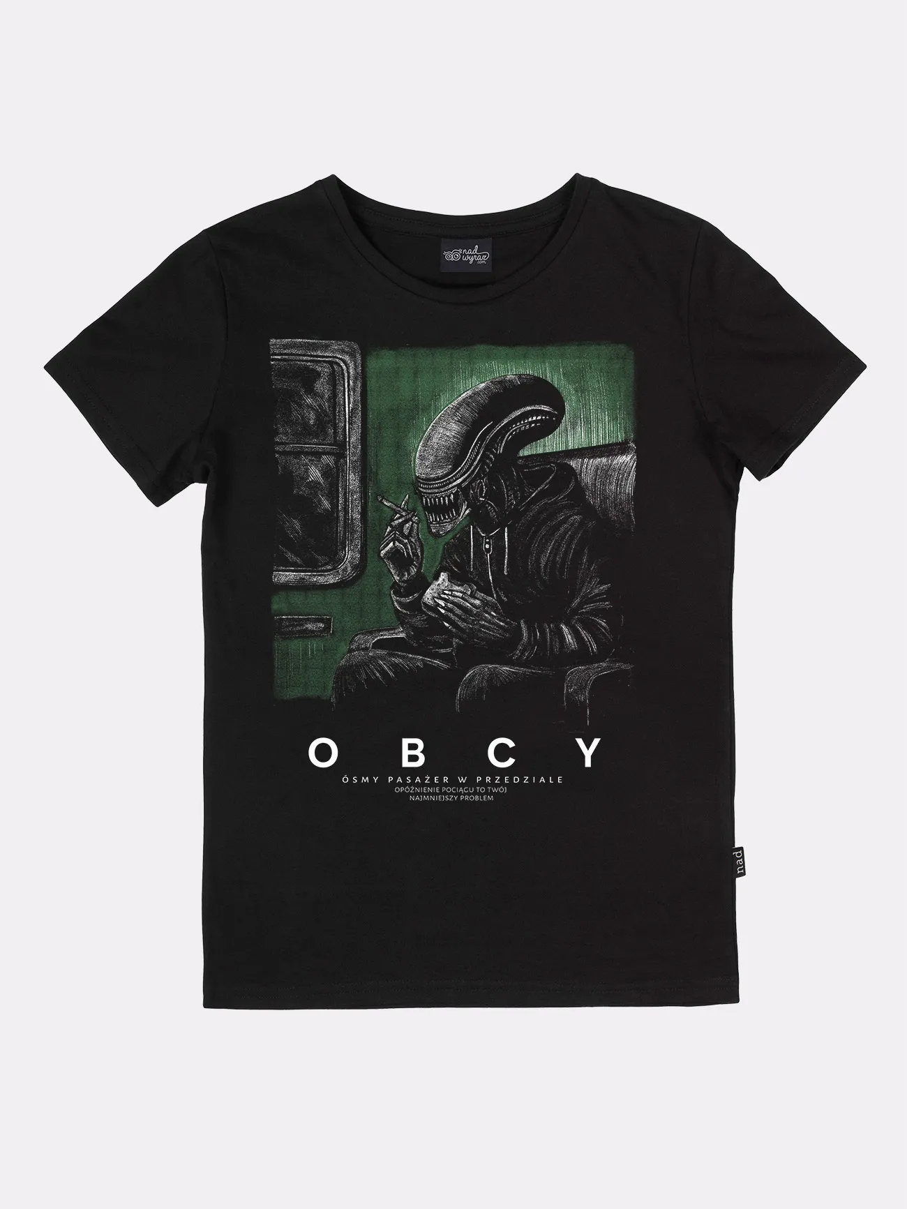 Lata naszej młodości to dziwny miks: amerykański sen przefiltrowany przez zapach przedziału PKP i szum magnetowidu. „Obcy. Ósmy pasażer w przedziale” to hołd dla tamtych czasów — gdy sci-fi mieszało się z rzeczywistością, a każda podróż mogła być kosmiczną przygodą. Ta koszulka to ironiczny list miłosny do lat 90. i 00., w których wszystko było możliwe – nawet spotkanie Obcego między Kutnem a Koluszkami.